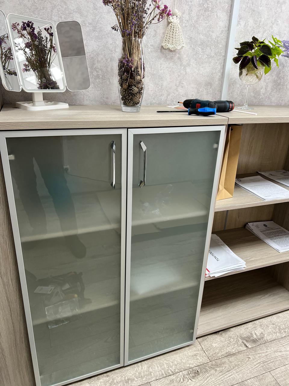 | 5 | O.ST-1.10R Шкаф высокий широкий (2 фасада стекло в раме) 800x420x1977 |